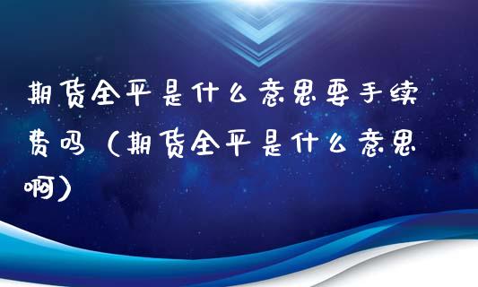 期货全平是什么意思要手续费吗(期货全平是什么意思啊)期货全平是什么意思期货全平就是开仓和平仓各收一次手续费,非全平期货 ......
