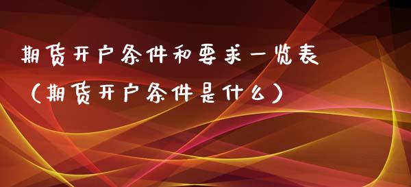 期货开户条件和要求一览表(期货开户条件是什么):期货开户条件是指期货开户人与期货经纪公司、期货交易所、期货业协会以及中 ......