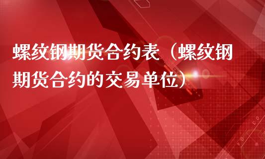 螺纹钢期货合约表(螺纹钢期货合约的交易单位)1、螺纹钢期货保证金 交易所品种交易单位一个点多少钱最小变动最小变动多少钱螺 ......