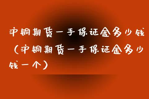沪铜期货一手保证金多少钱(沪铜期货一手保证金多少钱一个)期货保证金=成交*交易单位*保证金比例期货保证金的计算公式=成交* ......