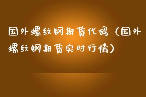 国外螺纹钢期货代码(国外螺纹钢期货实时行情),上海期货交易所成立于1993年8月28日,受(FIBOR)“2010年最具代表性”之称。是我国 ......