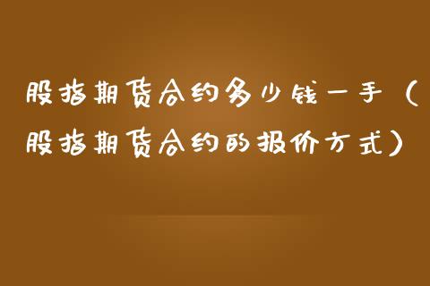 股指期货合约多少钱一手(股指期货合约的报价方式)股指期货合约一手是指报价单位是指每点的。股指期货的合约月份为最近三个连 ......