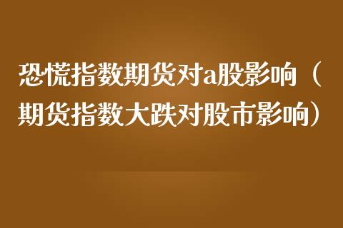 恐慌指数期货对a股影响(期货指数大跌对股市影响)另外,以上几点对a股影响的回答都只是技术层面上的,这种影响是在任何时候都有 ......