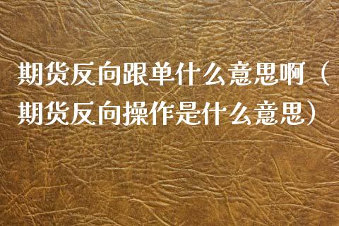 期货反向跟单什么意思啊(期货反向操作是什么意思)期货反向跟单的交易者在单边做多,在单边做空。有经验的投资者会想着如何反 ......