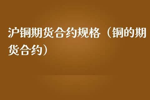 沪铜期货合约规格(铜的期货合约)标准品名录沪铜期货的定义为:沪铜期货的交易单位为5/手,报价单位为元(币)/,最小变动价位为1 ......