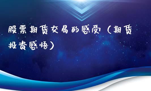 股票期货交易的感受(期货投资感悟)一、虽然期货交易的结果是以一个上市公司的业绩来评价的,但期货交易结果影响的是期货的走 ......